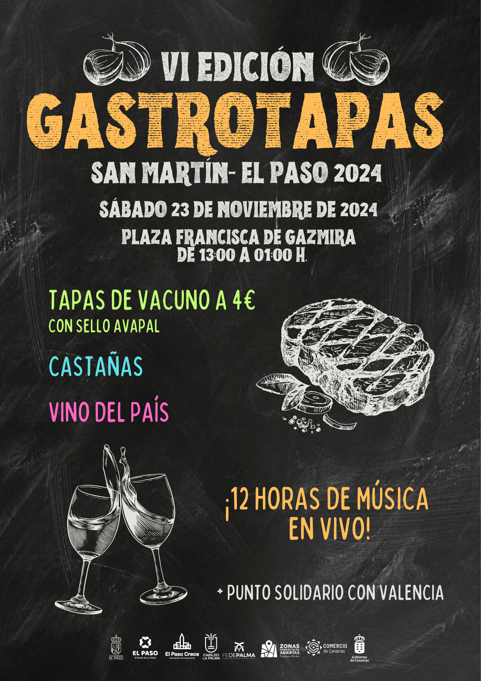 21-11-2024 Tras su aplazamiento debido a la alerta por lluvias del pasado fin de semana, el Ayuntamiento de El Paso confirma que la VI Edición de GastroTapas se celebrará finalmente este sábado, 23 de noviembre, en la Plaza Francisca de Gazmira. El evento se extenderá de 13:00h a 01:00h, consolidándose como una de las principales citas otoñales del municipio.