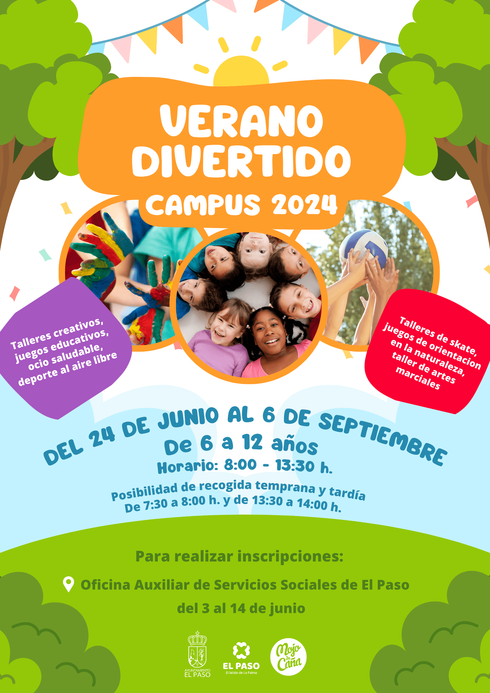 Abre el plazo de inscripción para participar en una nueva edición del programa de actividades para los más pequeños-as que se desarrollará durante los meses de verano en Ceip La Rosa – Camino Viejo y Ceip Jedey, combinando talleres creativos, juegos educativos, ocio saludable, deporte al aire libre, skate, juegos de orientación en la naturaleza, artes marciales y mucho más.