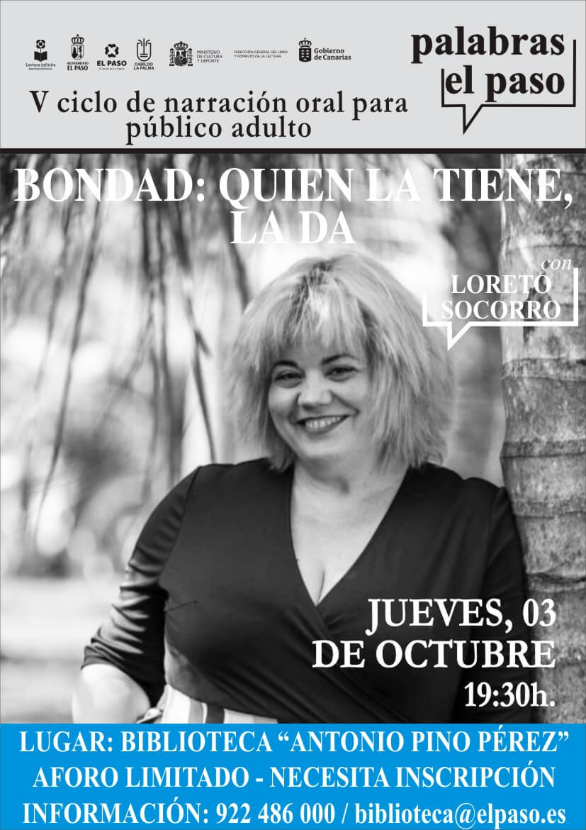El V Ciclo de Narración para Público Adulto de El Paso congrega a los mejores narradores-as de cuentos de Canarias. En esta ocasión es el turno de Loreto Socorro con