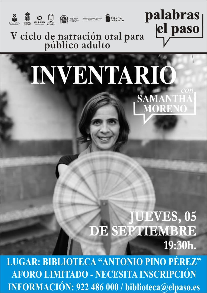 Casa de La Cultura Avenida Islas Canarias, 9, El Paso, Spain, El Paso, S/C de Tenerife, EspañaEl Ciclo de Narración para Público Adulto de El Paso celebra su quinta temporada congregando a los mejores narradores-as de cuentos de Canarias. En esta ocasión es el turno de Samantha Moreno con su espectáculo ‘Inventario’. #cultura #biblioteca
