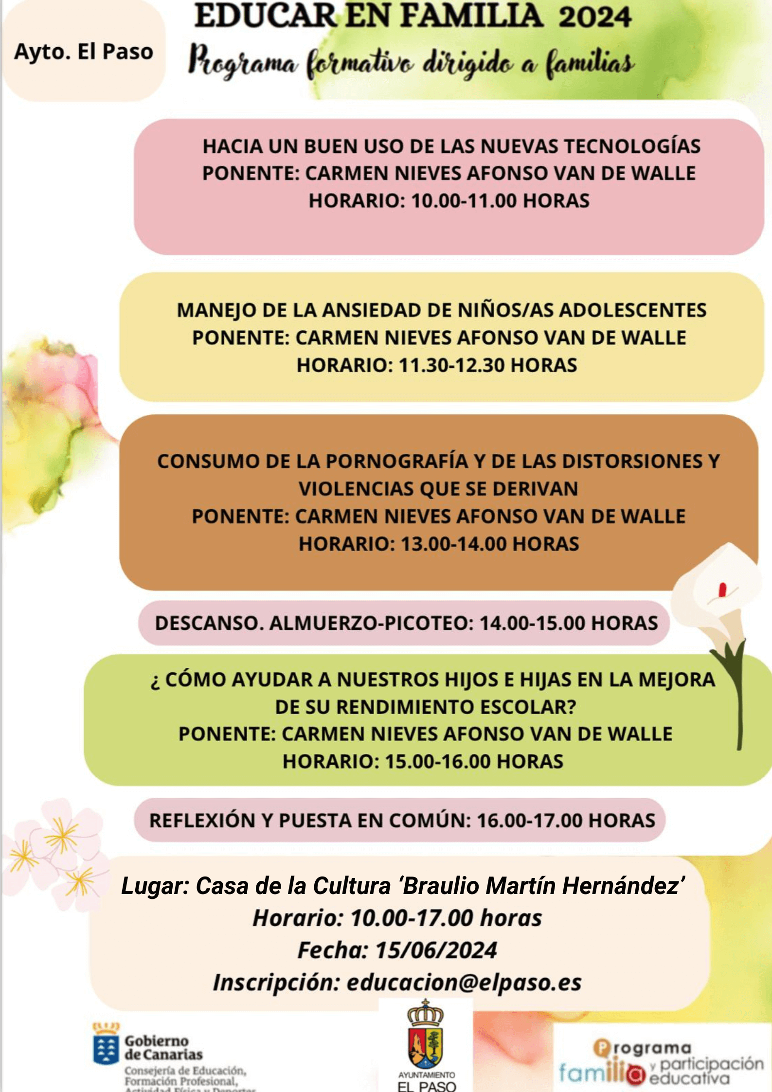 Casa de La Cultura Avenida Islas Canarias, 9, El Paso, Spain, El Paso, S/C de Tenerife, España“Durante este mes comenzaremos un nuevo y bellísimo libro: ‘La ternura’ de la escritora Paula Ducay, que mediante una prosa precisa y delicada se sumerge de lleno en el infinito mar que esconden las relaciones humanas. La lectura nos servirá, precisamente, para reflexionar en torno a la ternura y para Mdespedirnos hasta septiembre con muy […]