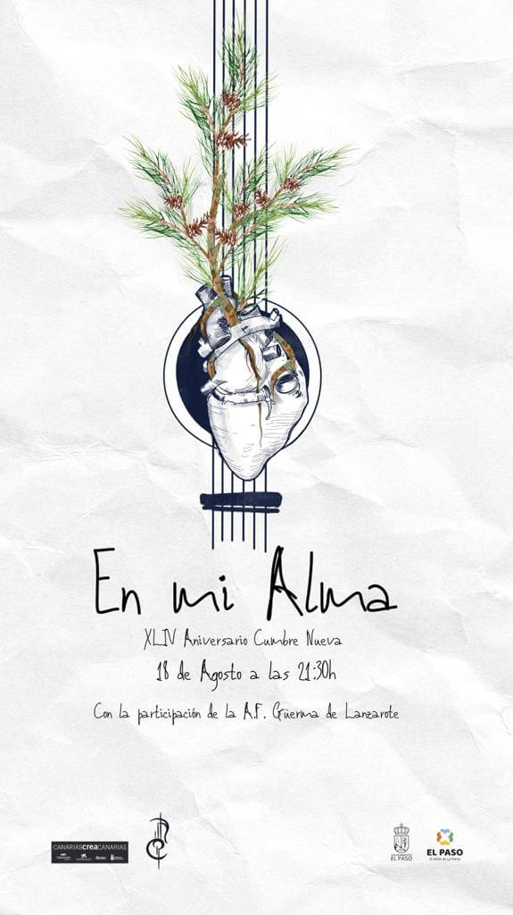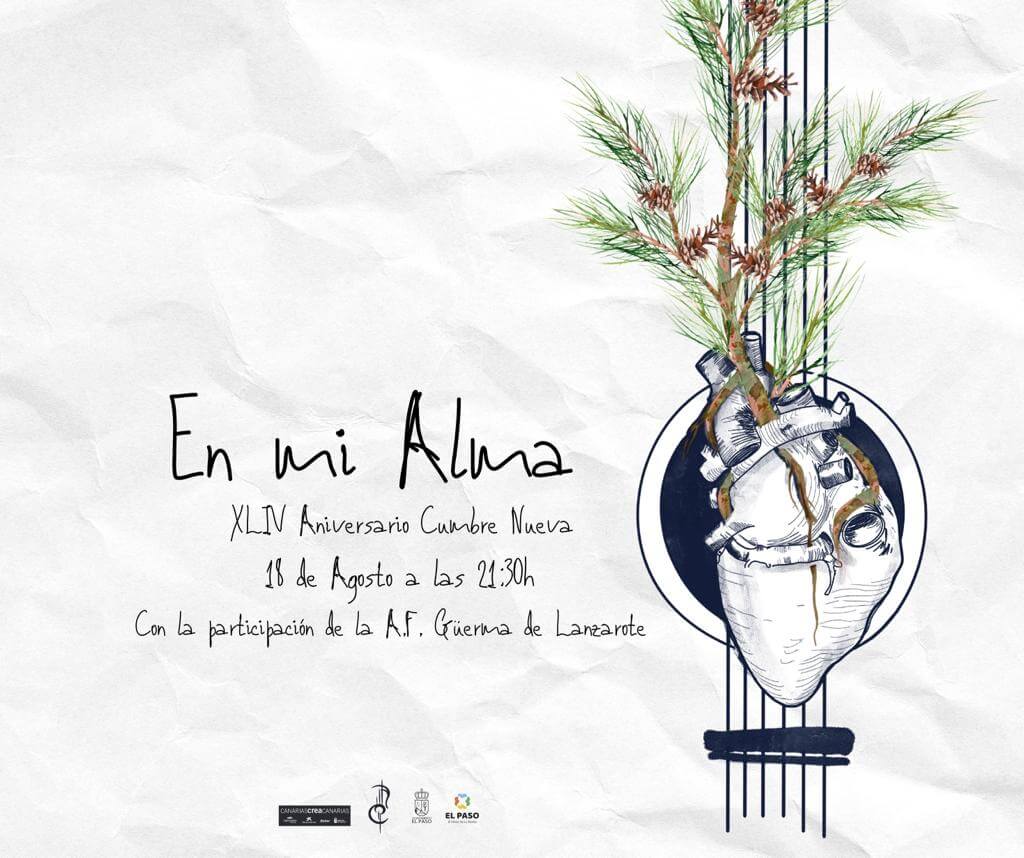 La Agrupación Folclórica Cumbre Nueva de El Paso conmemora el 44º Aniversario de su fundación con un evento musical que contará con la participación de la Agrupación Cultural Güerma de Lanzarote. ‘En el Alma’ es el título elegido para el espectáculo, presentado por Jose María Dávila Sosa, que se celebrará este viernes 18 de septiembre a las 21:30h en la plaza Francisca de Gazmira, en el marco de las Fiestas de Nuestra Señora del Pino 2023.
